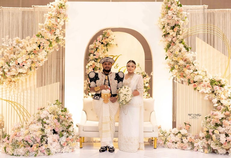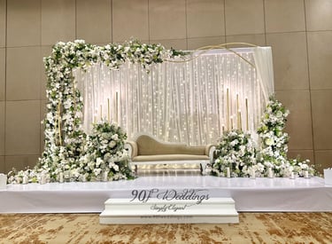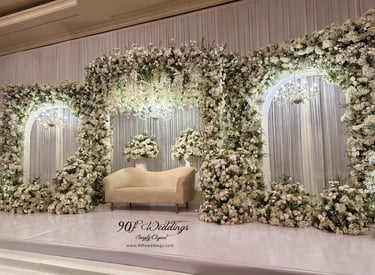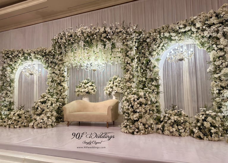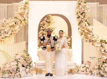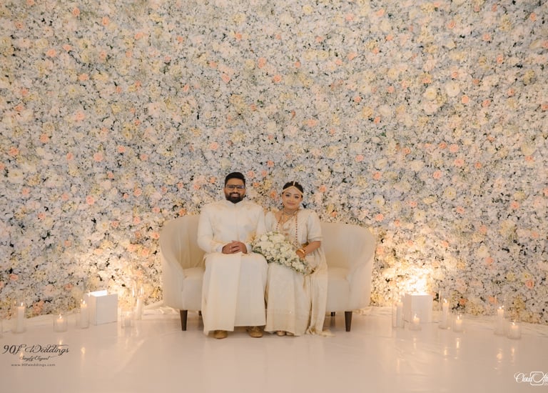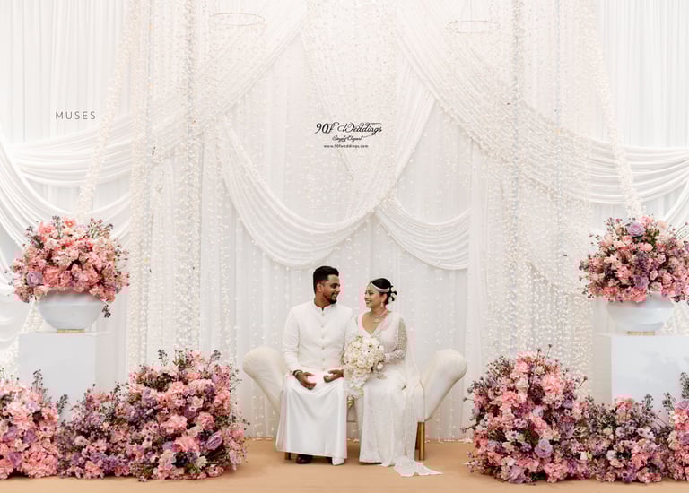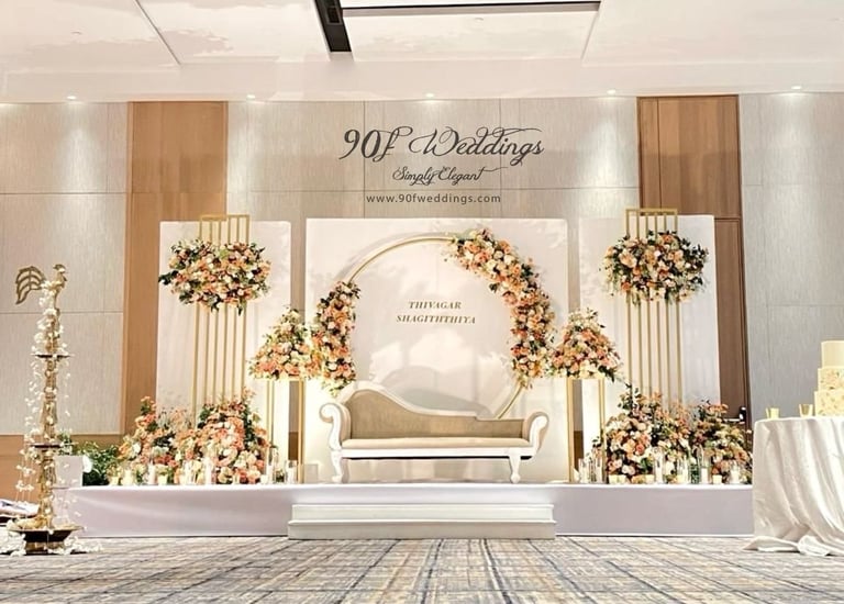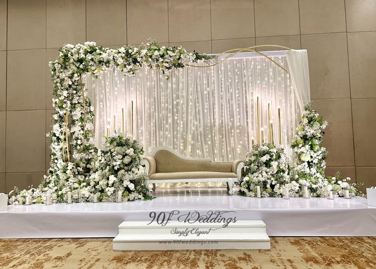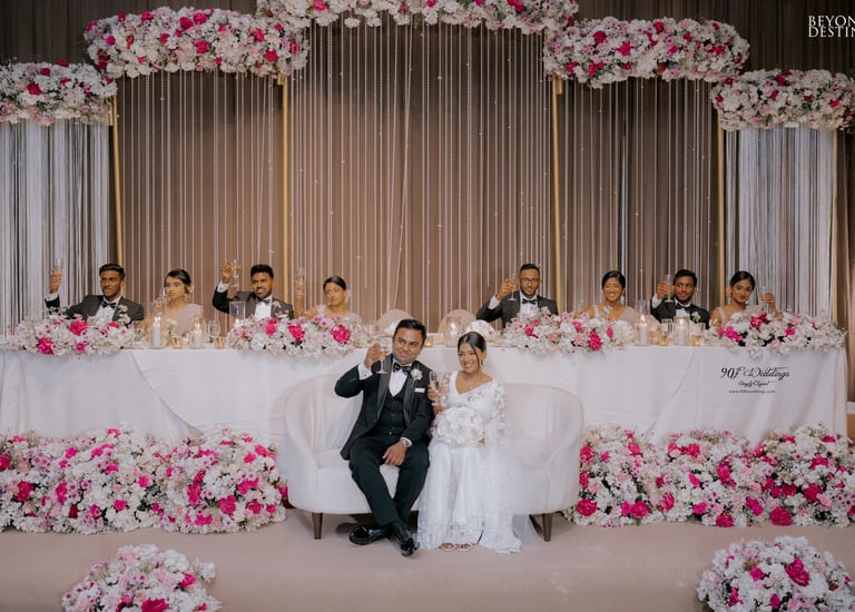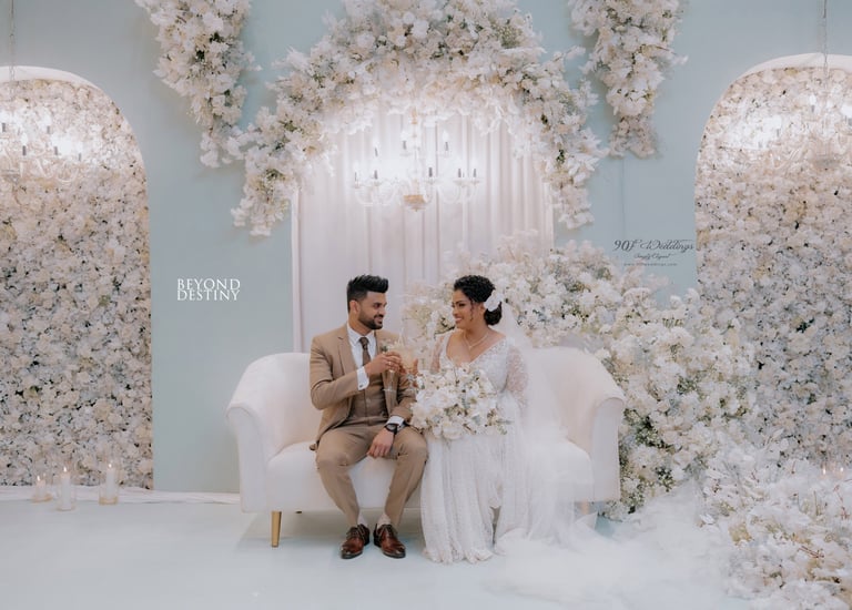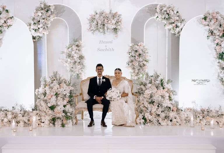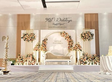 At 90F Weddings, we understand that every love story is unique, and we are dedicated to bringing that individuality to life through our custom wedding decorations. Our expert team specializes in creating sophisticated settee-back designs that serve as the perfect backdrop for your vows. We also offer stunning poruwa decors, which add a touch of elegance to any ceremony. Our beautifully designed entrance pathways create an inviting atmosphere for your guests, while our unique head table decors ensure that the focal point of your reception is as special as you are. From intricately crafted oil lamps to a variety of other bespoke decorations, our goal is to transform your vision into a breathtaking reality. Let us help you celebrate your love story with decor that truly reflects who you are as a couple.