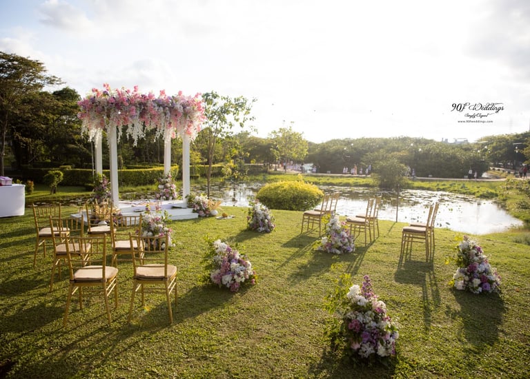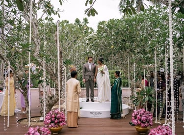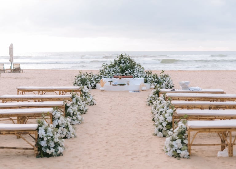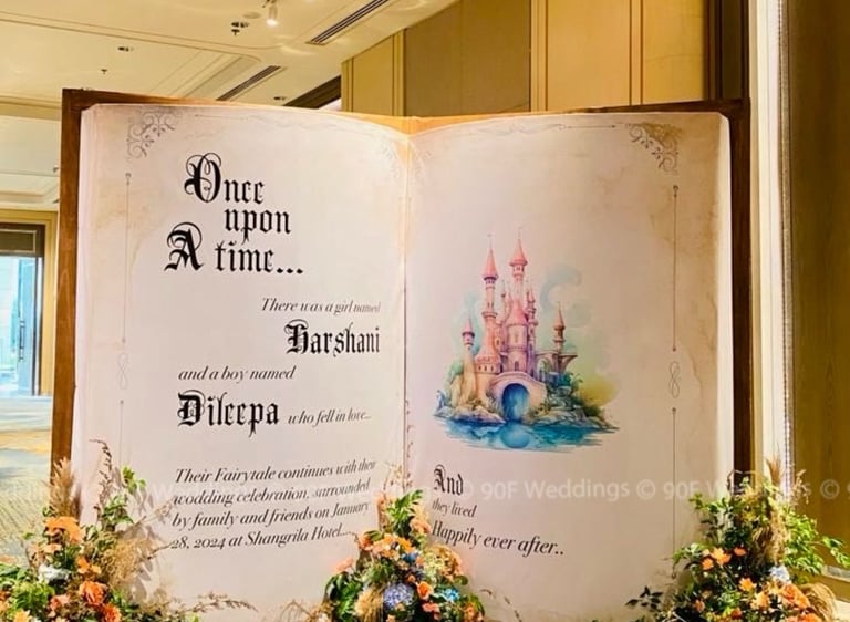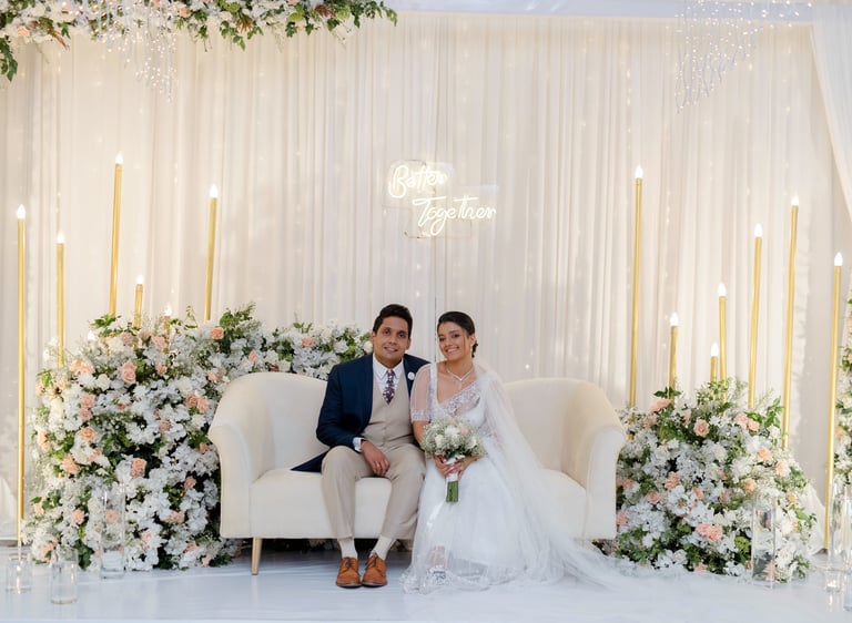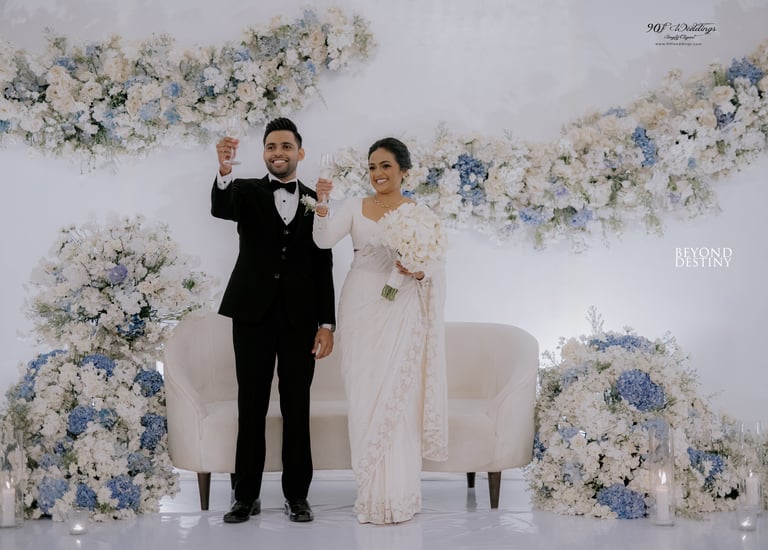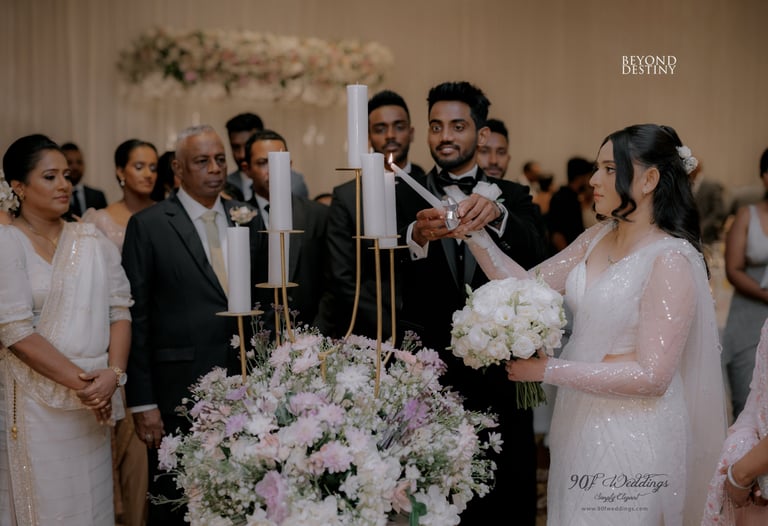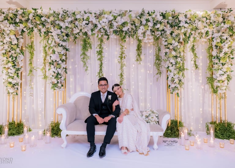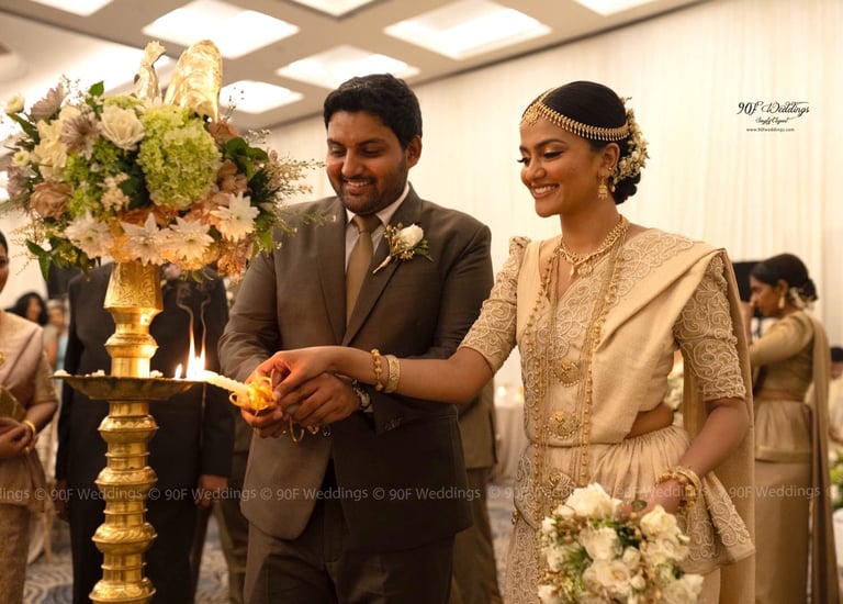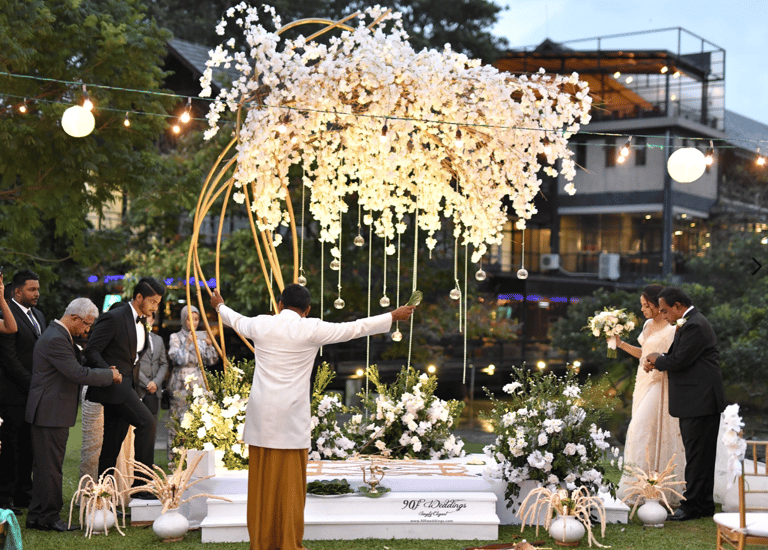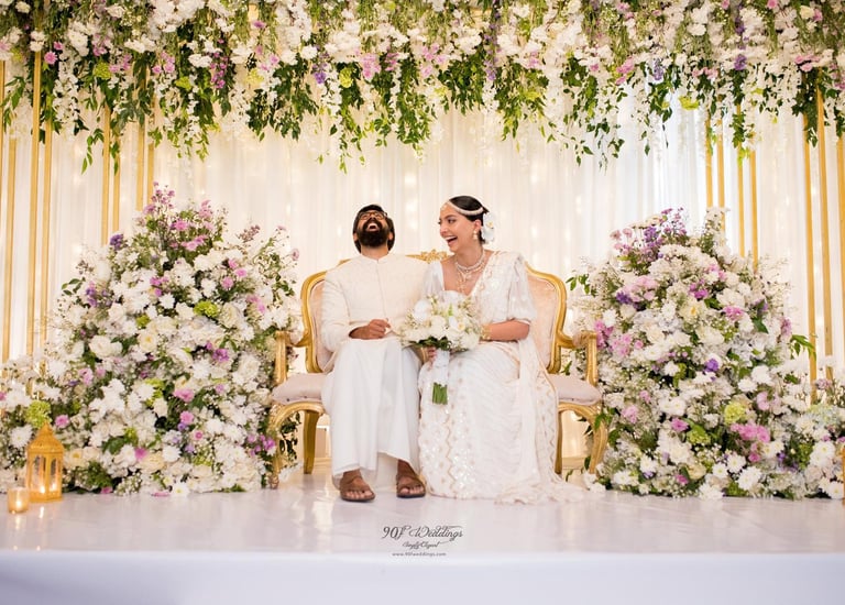 At 90F Weddings, we understand that every love story is unique, and we are dedicated to bringing that individuality to life through our custom wedding decorations. Our expert team specializes in creating sophisticated settee-back designs that serve as the perfect backdrop for your vows. We also offer stunning poruwa decors, which add a touch of elegance to any ceremony. Our beautifully designed entrance pathways create an inviting atmosphere for your guests, while our unique head table decors ensure that the focal point of your reception is as special as you are. From intricately crafted oil lamps to a variety of other bespoke decorations, our goal is to transform your vision into a breathtaking reality. Let us help you celebrate your love story with decor that truly reflects who you are as a couple.
